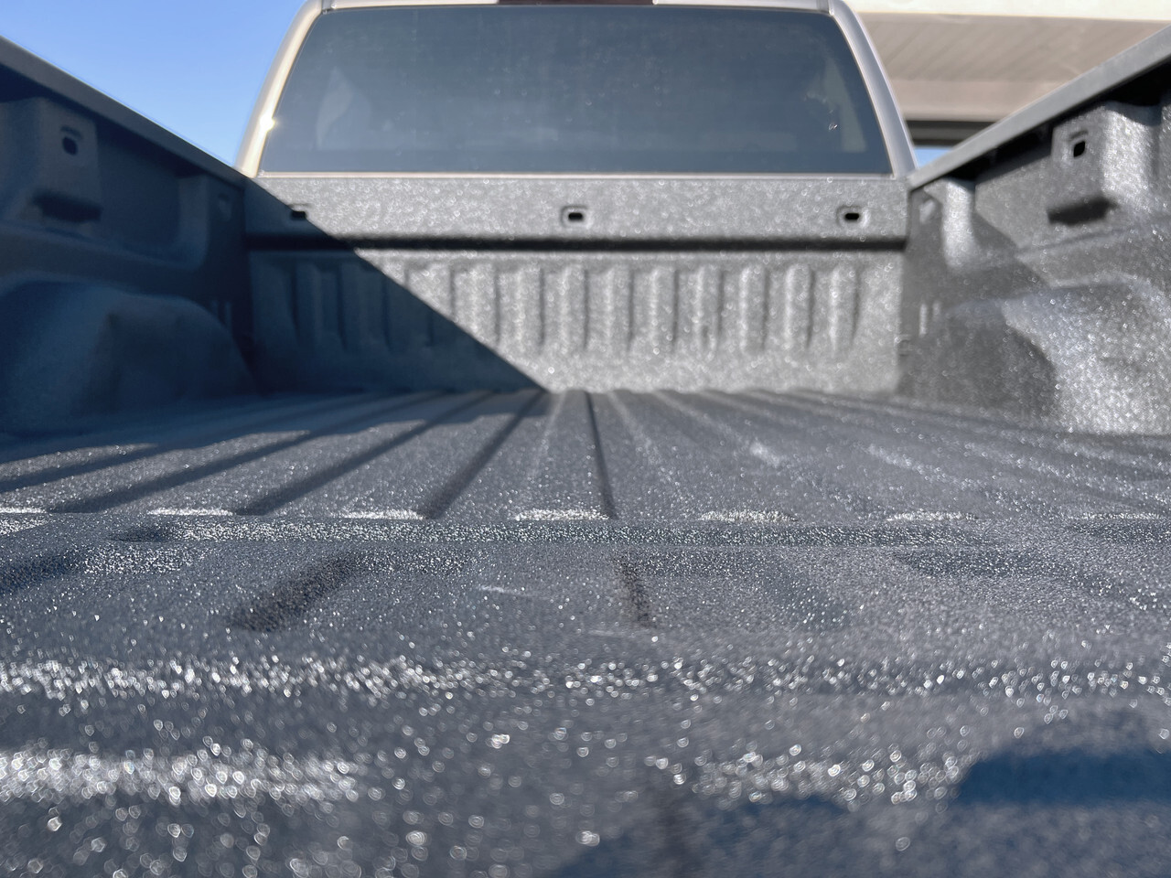 Spray-in coatings are valued because they adhere to the bed and form a continuous surface. That matters for long-term wear: there’s no rigid insert shifting around, and coverage can extend up bed walls and around contours.